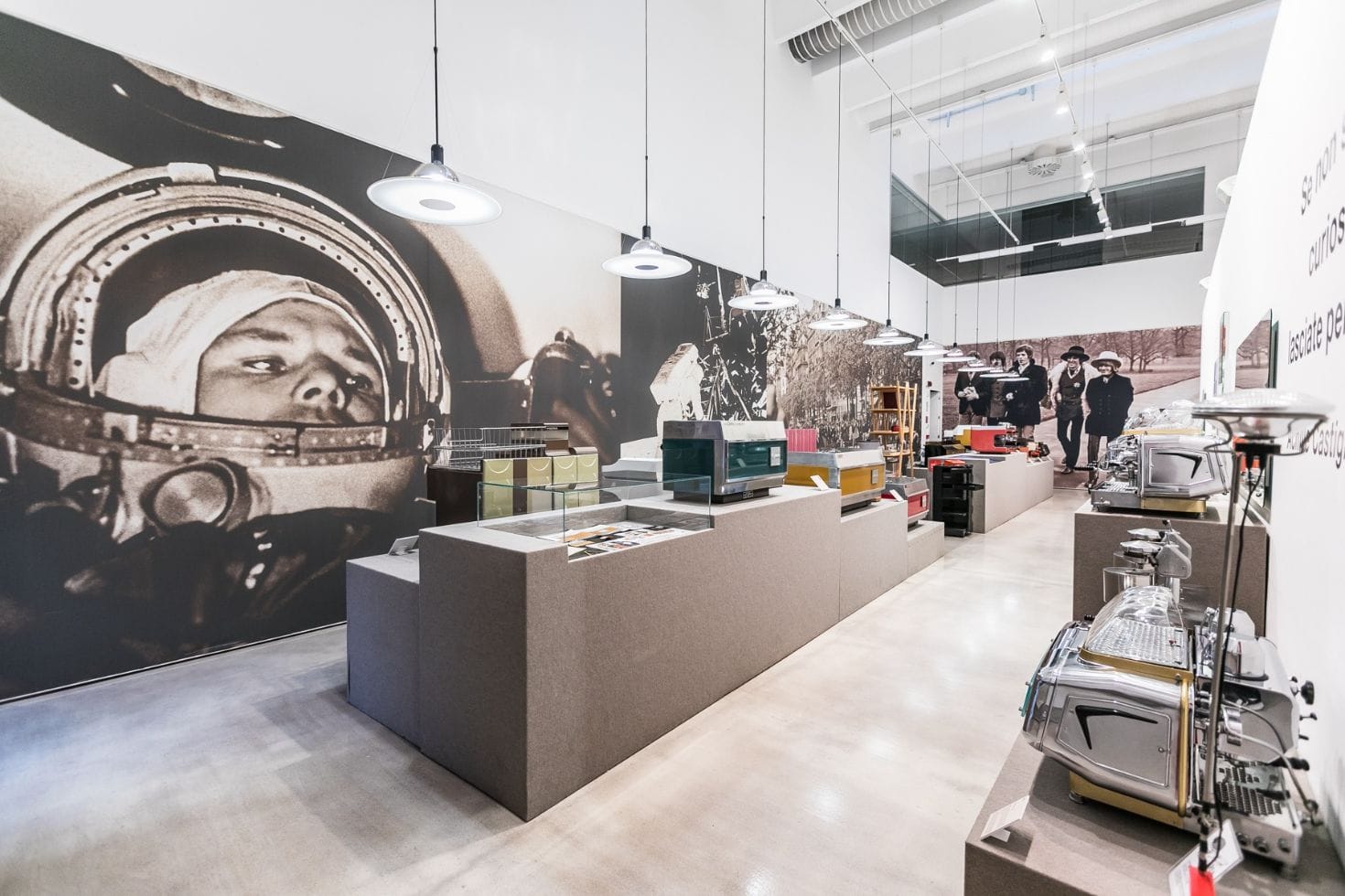 Willkommen im MUMAC! Auf diesem Weg laden wir Sie ein, das MUMAC in seinen Besonderheiten bei einem kurzen Besuch zu entdecken, der jedoch die grundlegenden Punkte der Entwicklung der Kaffeemaschine im Laufe der Zeit nicht vernachlässigt, mit einigen Verweisen auf Technologien, Design und Bräuche im Zusammenhang mit dem Konsum des Getränks. Bevor Sie jedoch in die Tiefe Ihres Weges eintauchen, nehmen Sie sich einen Moment Zeit und halten Sie hier in der Eingangshalle an, um Geschichte, Kuriositäten und Details dieses Ortes zu genießen. Dieses Museum wurde 2012 im Hauptsitz der Cìmbali-Gruppe hier in Binasco gegründet. Es wurde anlässlich des hundertjährigen Bestehens des Unternehmens, das 1912 von Giuseppe Cìmbali in Mailand gegründet wurde, ins Leben gerufen und ist die größte permanente Ausstellung, die der Geschichte, der Welt und der Kultur der professionellen Espressomaschinen gewidmet ist. Es ist ein Firmenmuseum, das über das Konzept eines Firmenmuseums hinausgeht: Es zeigt nicht nur die Maschinen der Marken der Gruppe (La Cìmbali, Faema, Casadio, Slayer), sondern auch alle Marken, die Meilensteine der Branche darstellen.