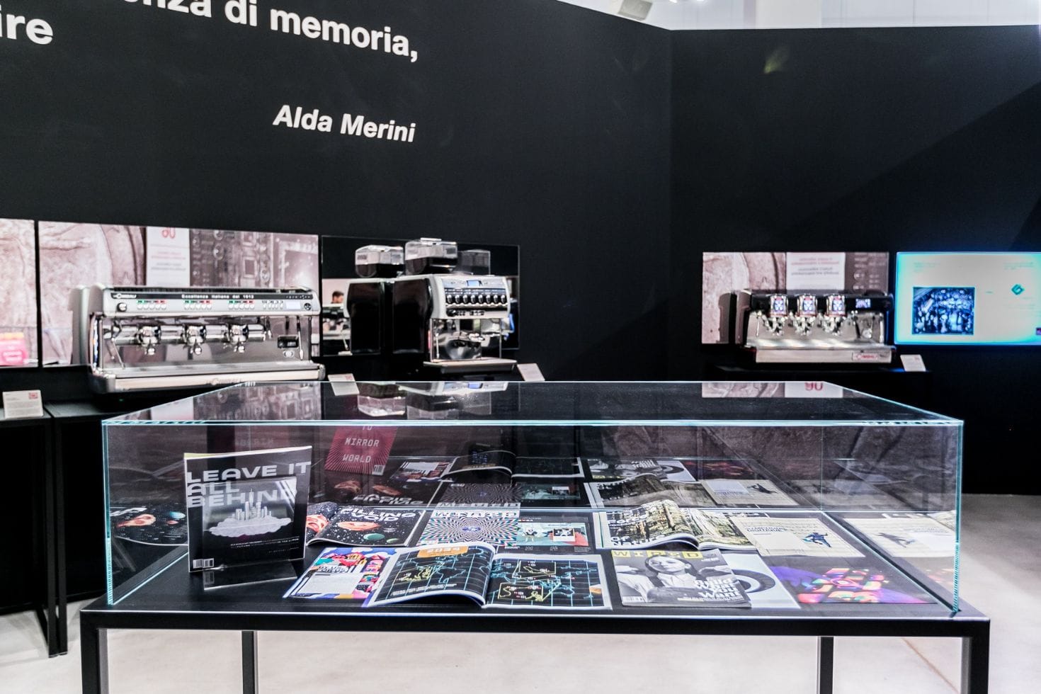 Beim Betreten des nächsten Raumes, dem der 80er- und 90er-Jahre, erfolgt ein Schrittwechsel. Die wirtschaftliche Erholung schreitet voran und Mode und Design treiben die Wirtschaft und das Made in Italy in einer Welt voran, die immer globalisierter wird. Auch die Hersteller von Kaffeemaschinen drängen auf internationale Märkte und erzielen nahezu sofortigen Erfolg. Es ist die Zeit, in der die italienische Elektronikindustrie, zusammen mit der der ersten Computer, die Märkte erobert. Das gleiche gilt für den Bereich der professionellen Kaffeemaschinen, in dem Italien immer repräsentativer wird als Ausdruck von Stil und Lebensart und in dem die Tradition des Kaffees und Cappuccinos an der Bar auch im Ausland an Popularität gewinnt. Die Elektronik in den Maschinen führt zu einer Vereinfachung der Bedienung, kombiniert mit bisher unerreichter Sorgfalt und Exzellenz. Mit der FAEMA Tronic, entworfen im Jahr 1983 von Ettore Sottsass und Aldo Cibic, entsteht die erste elektronische Maschine, die mit ihrem Bedienfeld die Menge des ausgegebenen Kaffees dosieren kann. Sie beschleunigt auch die Entwicklung von "vollautomatischen" Maschinen mit vollständiger Automatisierung, die in der Lage sind, auf Knopfdruck ein komplettes Menü an Kaffee- und Milchgetränken auszugeben. In diesem Raum vermischen sich Elektronik, Spiel, Farben, Accessoires, Bilder und Maschinen, die eine Ära repräsentiert haben, die über die 80er Jahre hinausgeht bis in die 90er. Anfang der 1990er Jahre belegt Italien den fünften Platz unter den Industriemächten. Im Bereich der Kaffeemaschinen verbessern sich die Energieeffizienz, die Benutzerfreundlichkeit, die Ergonomie und es werden neue Materialien mit geringerer Umweltbelastung bevorzugt, wobei auf Sicherheit und Gesundheit von Benutzern und Verbrauchern geachtet wird. In diesem Raum lohnt es sich, einen Blick auf die FAEMA E91 zu werfen, die ästhetisch von Giugiaro Design inspiriert wurde und auf den harmonischen Linien des historischen Modells E61 basiert, sowie auf die vollautomatische La Cìmbali M50 Dolcevita.
