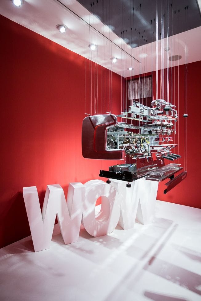In dem letzten Saal des Museums vermischen sich im Lab Gedächtnis und Zukunft in den Ikonen der Zeit. Innovation aus der Tradition bedeutet, Ideen zu erneuern, den Meilensteinen der Geschichte, Erfindungen, Bräuchen und Gewohnheiten einen neuen Sinn zu geben. Hier erwarten Sie thematische Inseln, die Sie in vergangene, gegenwärtige und zukünftige Dimensionen entführen und sich miteinander vermischen, um die Herausforderungen zu verstehen, denen das Unternehmen im Laufe der Zeit gegenüberstand, zwischen technologischen Impulsen, Innovationen, sozialer und kultureller Unternehmensverantwortung und erreichten Zielen. Die Darstellung der Verbindung von Gegenwart, Vergangenheit und Zukunft wird durch Fotografien an den Wänden geprägt, die von den Teleskopen Hubble und Webb stammen und uns direkt in eine so weit entfernte Vergangenheit führen, dass sie kaum vorstellbar ist, durch eine so innovative Technologie, dass sie die Zukunft berührt. Ein neuer Raum, der der unendlichen Verbindung zwischen Vergangenheit, Gegenwart und Zukunft gewidmet ist, durch sieben thematische Inseln, die einige der wichtigsten Themen unserer Geschichte und Unternehmensmission illustrieren. Um sie zu entdecken, gehen Sie sofort nach rechts. Die erste Insel ist Faema E61 gewidmet: Geschichte und Mythos. Seit 1961 die verbreitetste und langlebigste Maschine. Die zweite erzählt den Unterschied zwischen traditionellen und superautomatischen Maschinen. Der Unterschied besteht seit über 50 Jahren. Auf der dritten Insel sind einige interne Unternehmenspublikationen aus der Vergangenheit ausgestellt. Kommunikations- und Informationsinstrumente, die entwickelt wurden, um Informationen im Unternehmen zu verbreiten. In der nächsten Nähe der Cìmbali S15 ist das "elektronische Nasen"-Objekt ausgestellt, das Innovation in ein nützliches Werkzeug umwandelt, zwischen Elektronik, Können und Chemie. Um herauszufinden, wie es funktioniert und wofür es dient, genügt es, den QR-Code auf der Beschriftung zu scannen. Gehen Sie dann zur Insel, die den Mühlen und Mahldosierern gewidmet ist. Vier Mahldosierer für zwei Marken, von gestern bis heute. Vom Handwerk zur Serienproduktion mit immer präziseren Mahltechnologien. Bis hin zur integrierten Mahlung in den Superautomaten. Auf der nächsten wird über Personalisierung gesprochen: die Flexibilität und die Möglichkeit, die Masken der Maschinen für jede Umgebung anzupassen. Im vorletzten Ausstellungsstück ist der Abschnitt für den häuslichen Gebrauch gewidmet: Faema bringt ein Spitzenprodukt auf den Markt für einen Espresso wie in der Bar. Auf der letzten Insel wird die Exzellenz der Marke mit dem Rebranding in einer Maschine, der Flaggschiff M200 von La Cìmbali, präsentiert. Schließlich, wenn Sie die letzte Schwelle des Museums überschreiten und in sein rotes Herz eintreten, treffen Erbe und Zukunft in einem Werk aufeinander, einer Installation zwischen Technologie, Kunst und Design: die Explosionszeichnung der La Cìmbali M100, der Maschine des Hundertjährigen. Hier können Sie wirklich die verborgene Komplexität hinter dem, was nur oberflächlich betrachtet eine einfache Espressotasse ist, verstehen. Technologische Seele, Innovation, Design enthüllen alle Hände und Köpfe einer langen und komplexen Lieferkette aus Rohstoffen, Patenten, Kreativität und Unternehmertum.